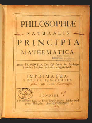 Titel von Newtons Schrift "Die mathematischen Prinzipien der Naturphilosophie"